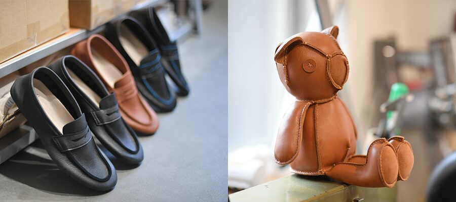 「革で靴をつくるとなると、膨大な残革が出ます。これらを捨てず有効利用して小物をつくるとか、残革でつくった商品の売上から数パーセントどこかに寄付するとか、そういった活動も視野に入れています。あくまで商品として、タダで配るのではなく、うまくビジネスに絡めていければと考えています」